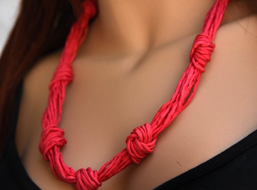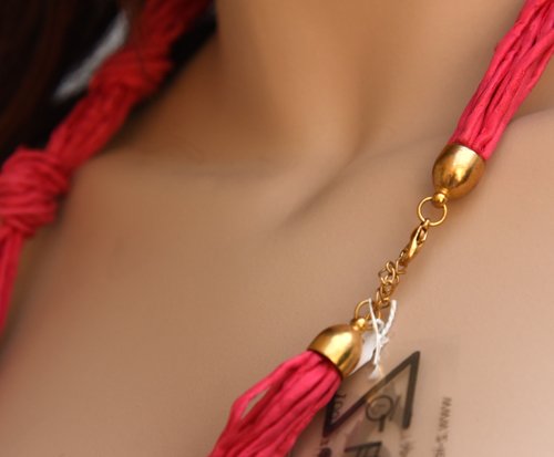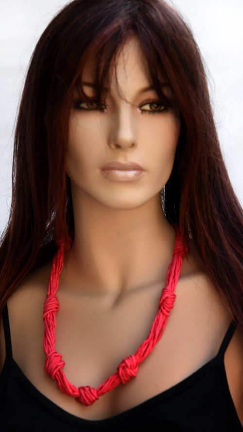 Roze zijden ketting, handgeschilderd, goudkleurige sluiting, de knopen kunnen eruit gehaald worden, dan is de ketting 2x zo lang, de ketting is nu 72 cm op de foto. Als je de knopen eruit haalt, kun je de ketting ook dubbel dragen. Wil je andere kleuren? Mail me met je wensen.