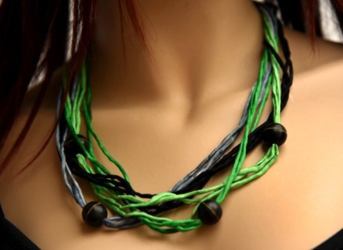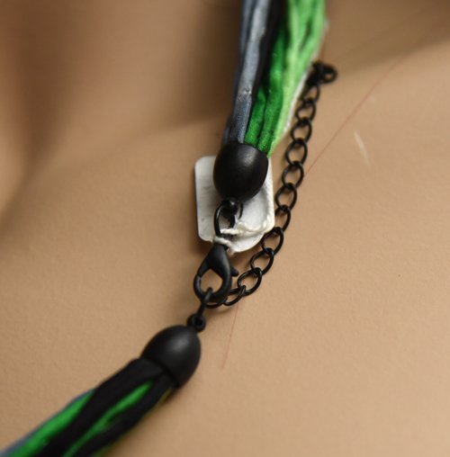Echte handgeschilderde zijden ketting, lichtgroen, middengroen, platinagrijs en zwart