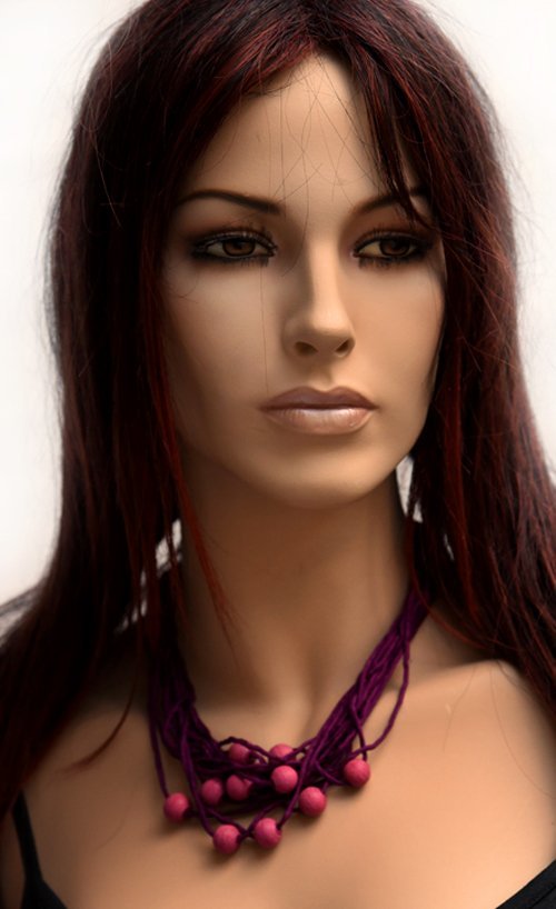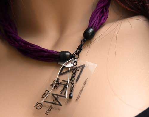 Echte handgeschilderde zijden ketting, paars, lichtpaarse houten kralen, zwarte sluiting, 52 cm. Wil je andere kleuren? Mail me je wensen.