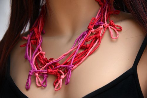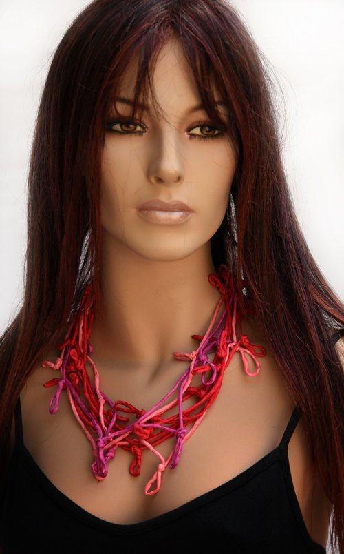 Echte handgeschilderde zijden ketting rood roze donkerroze violet
